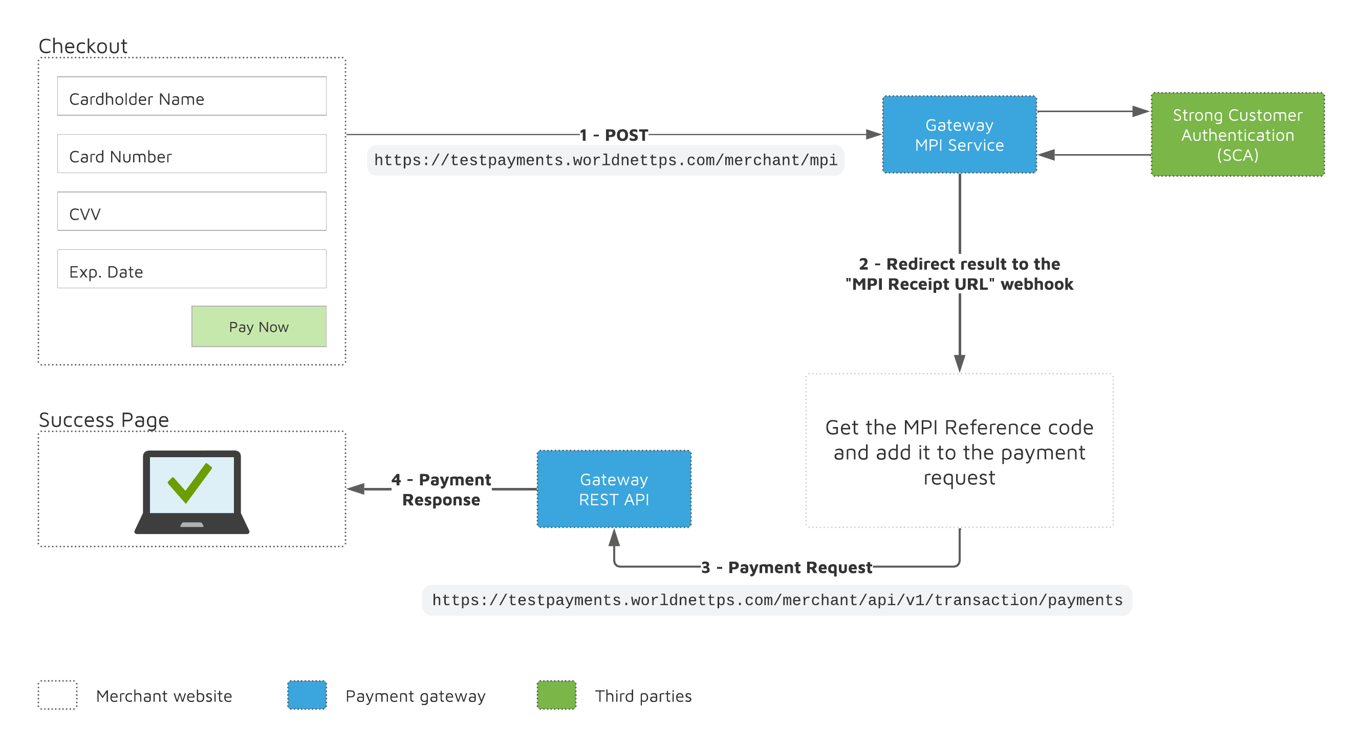 To simplify 3D Secure for API integrations, %CompanyName provides a simple MPI redirect.